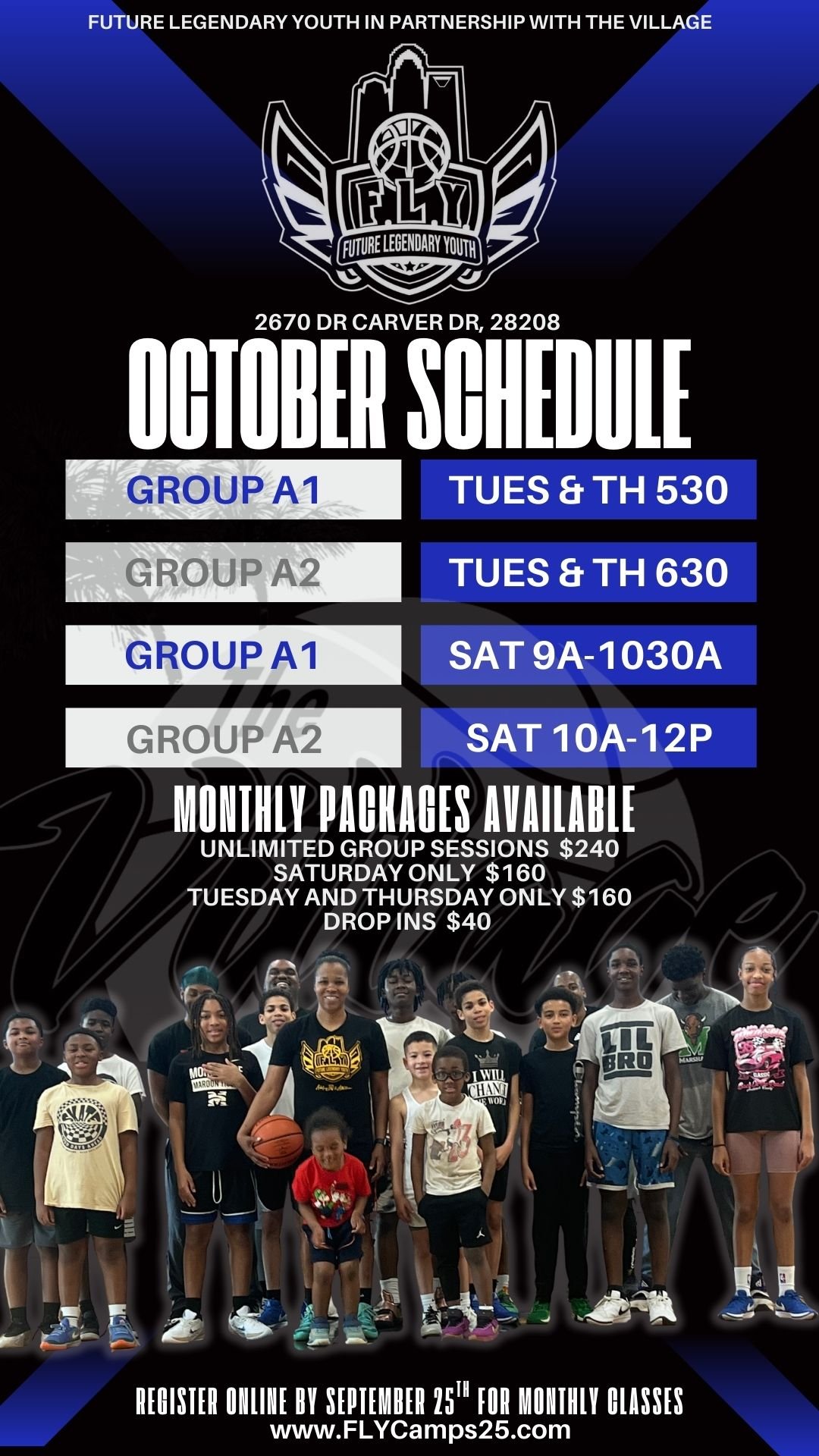 Choose a session to attend and drop in! All Group Sessions are available for drop in attendance. Boys and Girls. 5yo - 18yo. Younger Athletes are typically assigned to GroupA1 for age and skill level. CoachA will reassign athletes as needed.